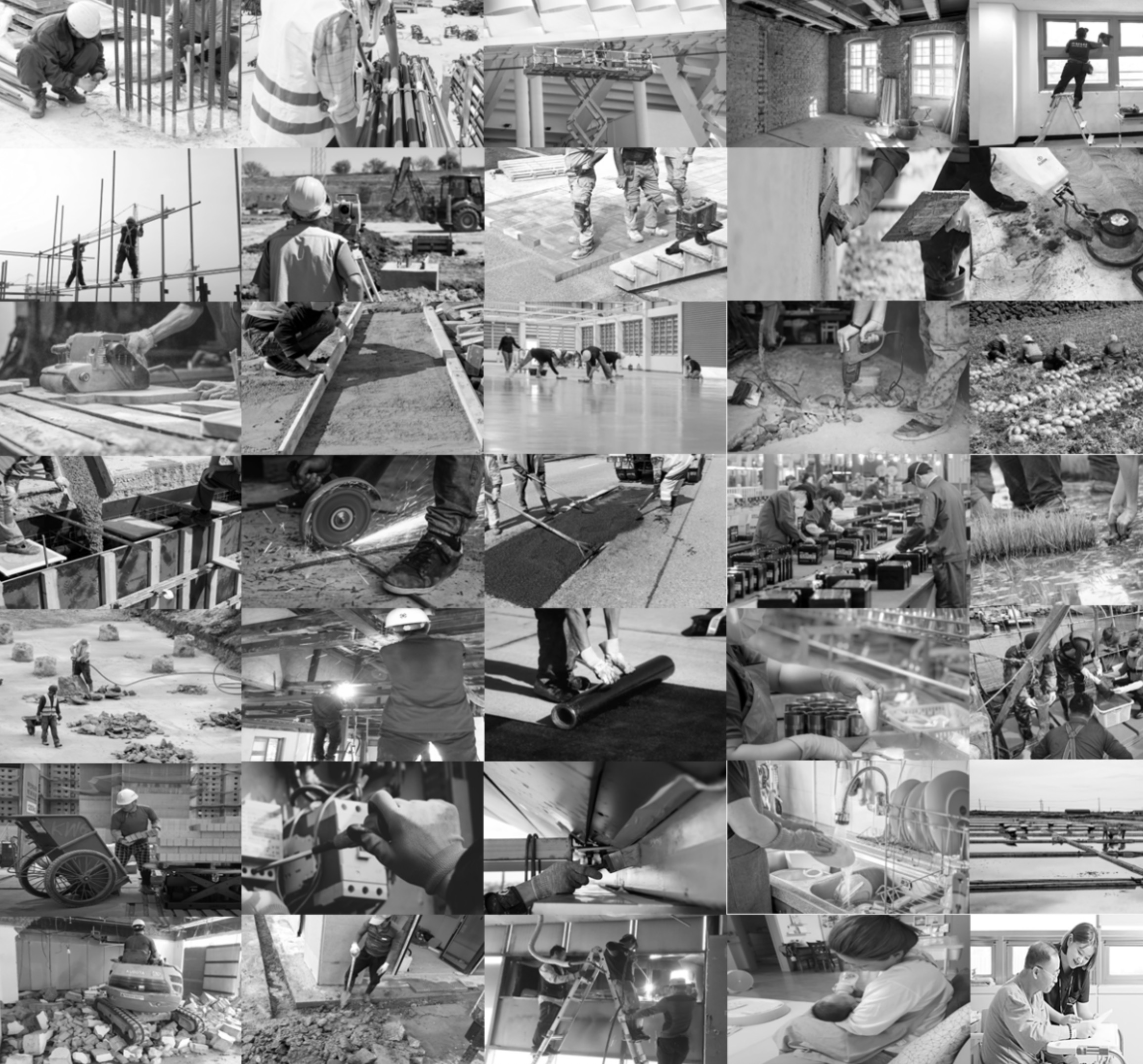 미장, 조적, 석공, 철근, 용접, 설비, 하스리, 비계(아시바), 판넬, 전기, 조경, 목수(건축/형틀/인테리어)